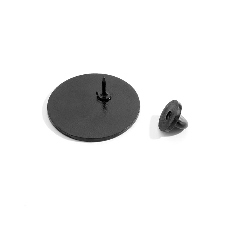 Durable metal alloy with glossy enamel finish and secure pin-back clasp.