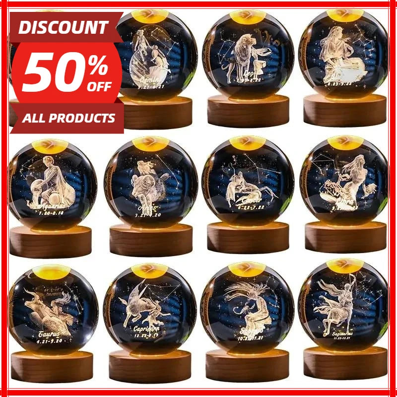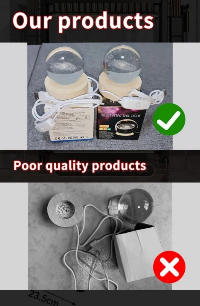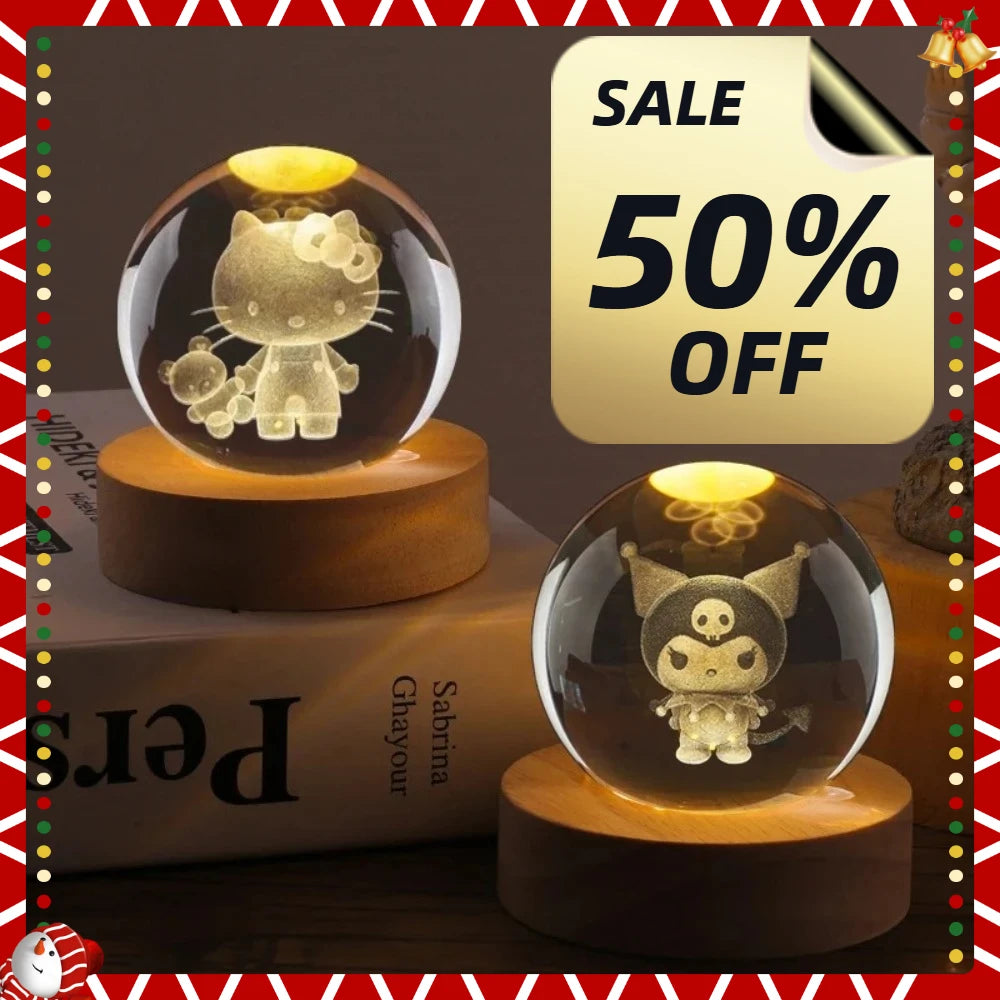 High-quality crystal glass with detailed laser-etched 3D designs and a USB-powered LED base.