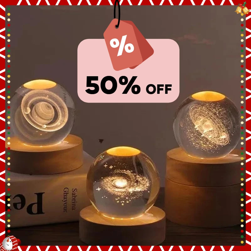 Explore the cosmos from your room with this LED Saturn & Solar System Night Light — a glowing 3D crystal ball lamp that brings the wonders of space into your home décor.