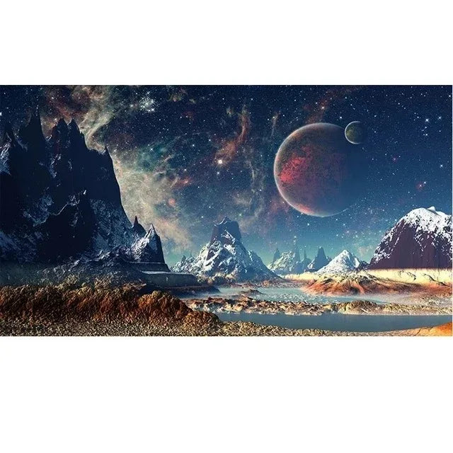 Short Description: Explore distant worlds with this magnificent planets universe galaxy canvas featuring stunning stars landscape and exoplanet imagery — perfect space wall art for sophisticated living room decoration!