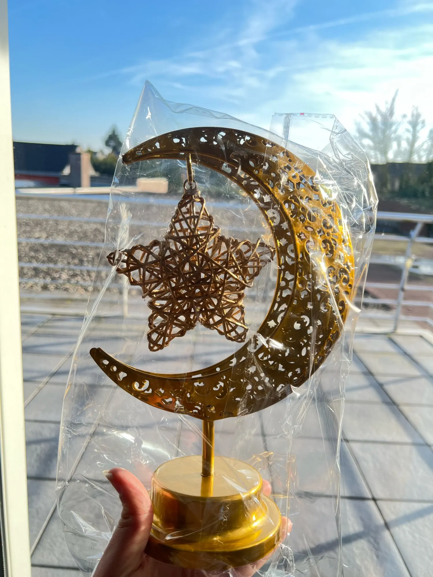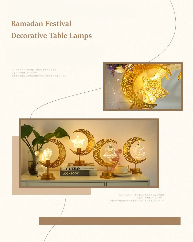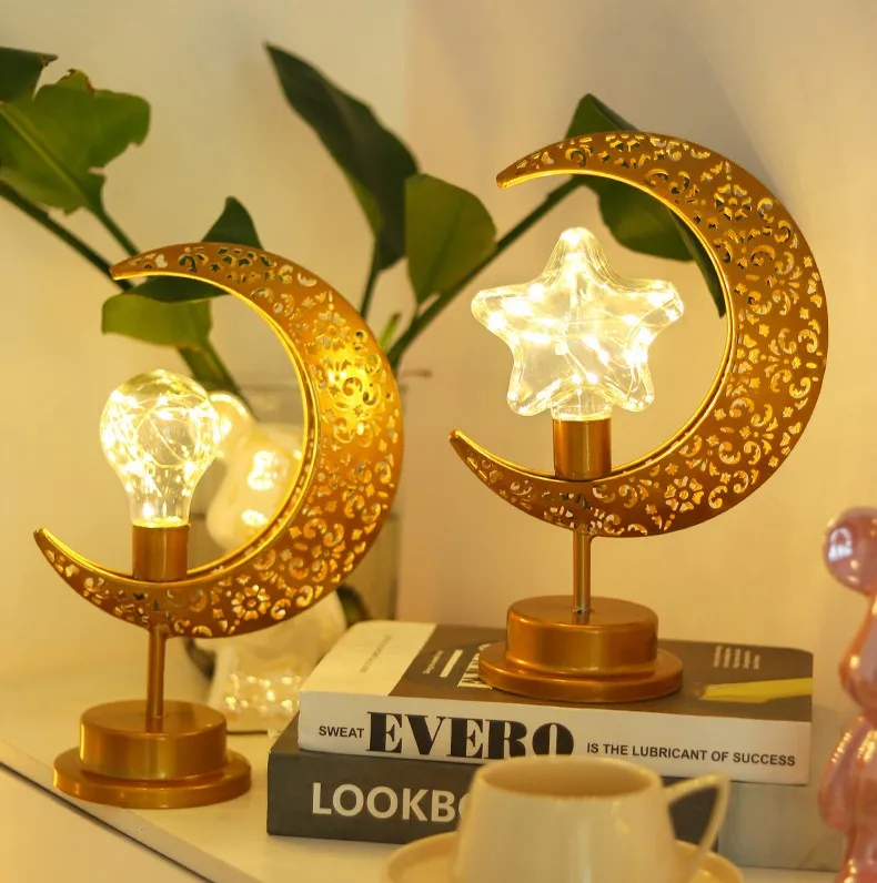 Celebrate the spirit of Ramadan and Eid with this elegant Moon LED Lamp — a beautifully crafted metal light perfect for creating a festive and peaceful ambiance in your home during Ramadan Kareem or Eid Al-Adha.
