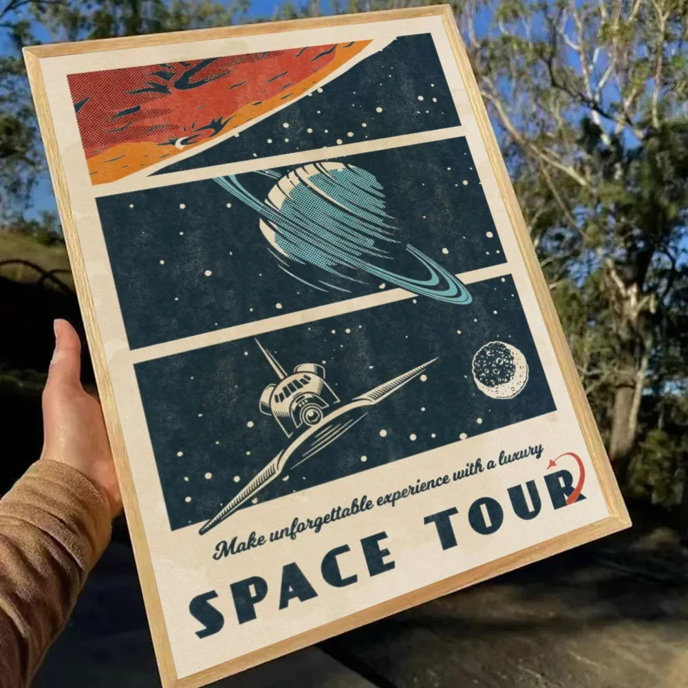 Bring nostalgic space vibes to your walls with this Retro Space Travel Poster — a vintage-style paper print featuring planets and cosmic scenes, perfect for bedrooms, cafes, bars, or entryway decor.