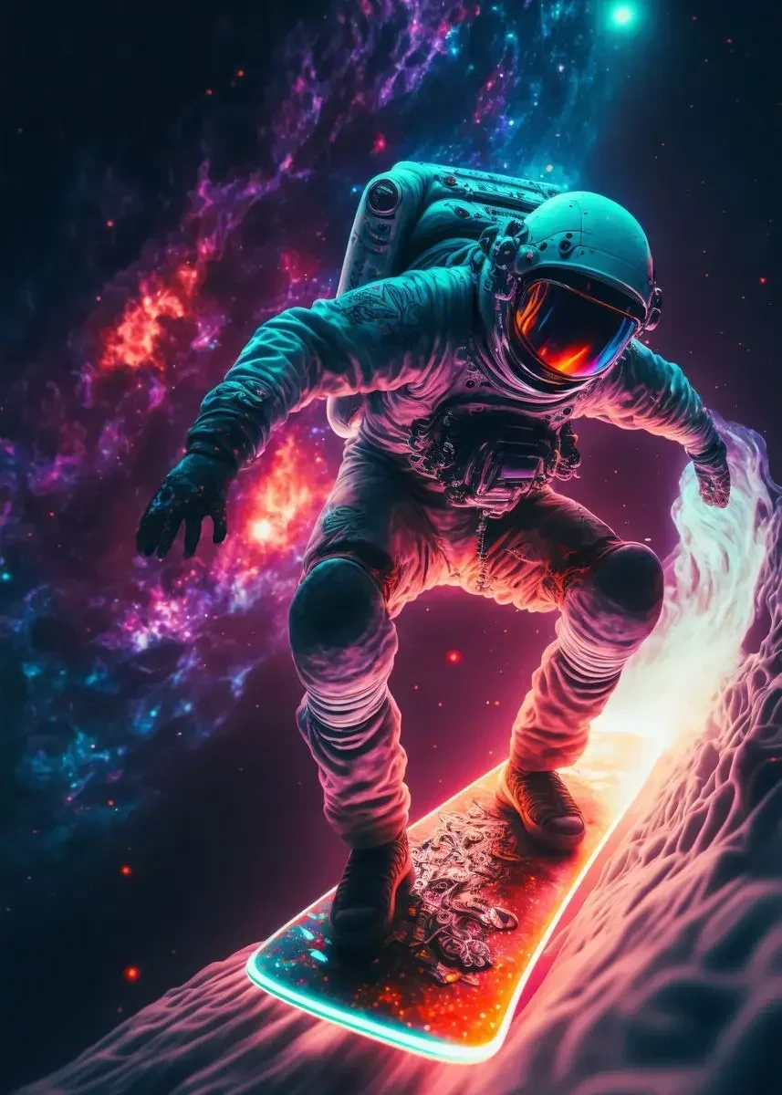 Skate into another dimension — upgrade your room with this vibrant space art today!