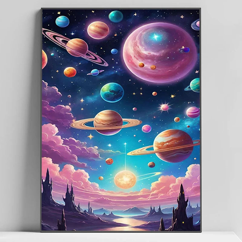 Short Description: Escape into otherworldly realms with this stunning surrealism anime fantasy planet canvas featuring dreamlike universe landscapes — perfect vintage decorative wall art that merges cosmic wonder with artistic imagination!