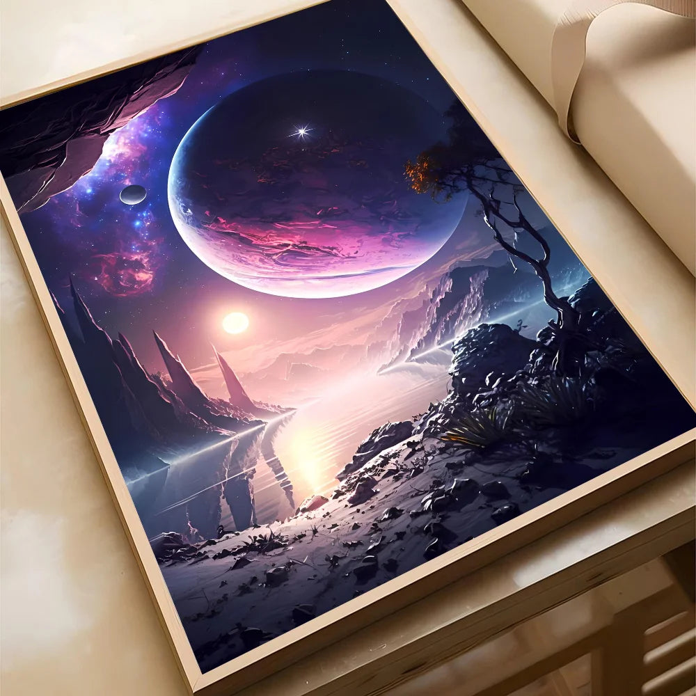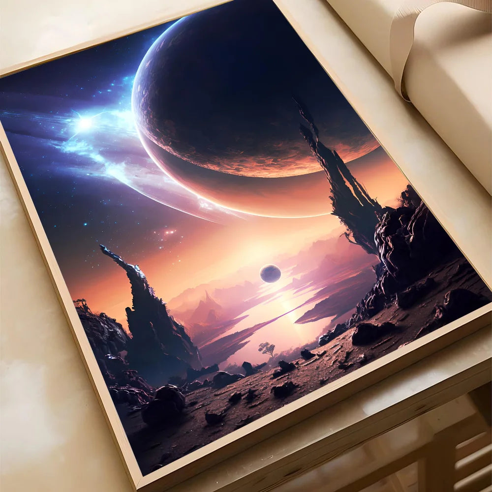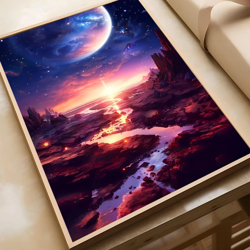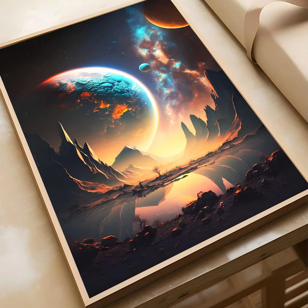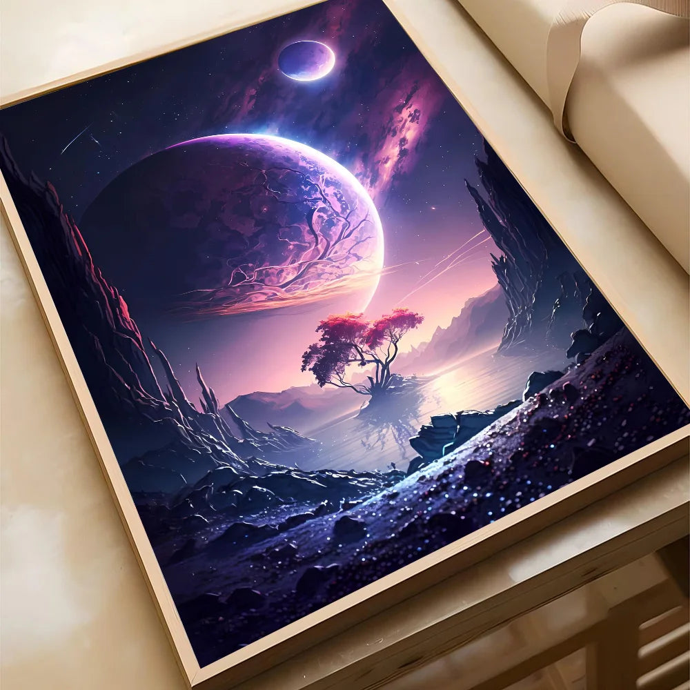 Surrealism Anime Fantasy Planet Self-Adhesive Poster – Frameless Space Art