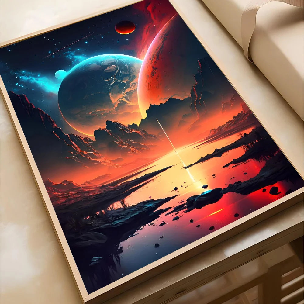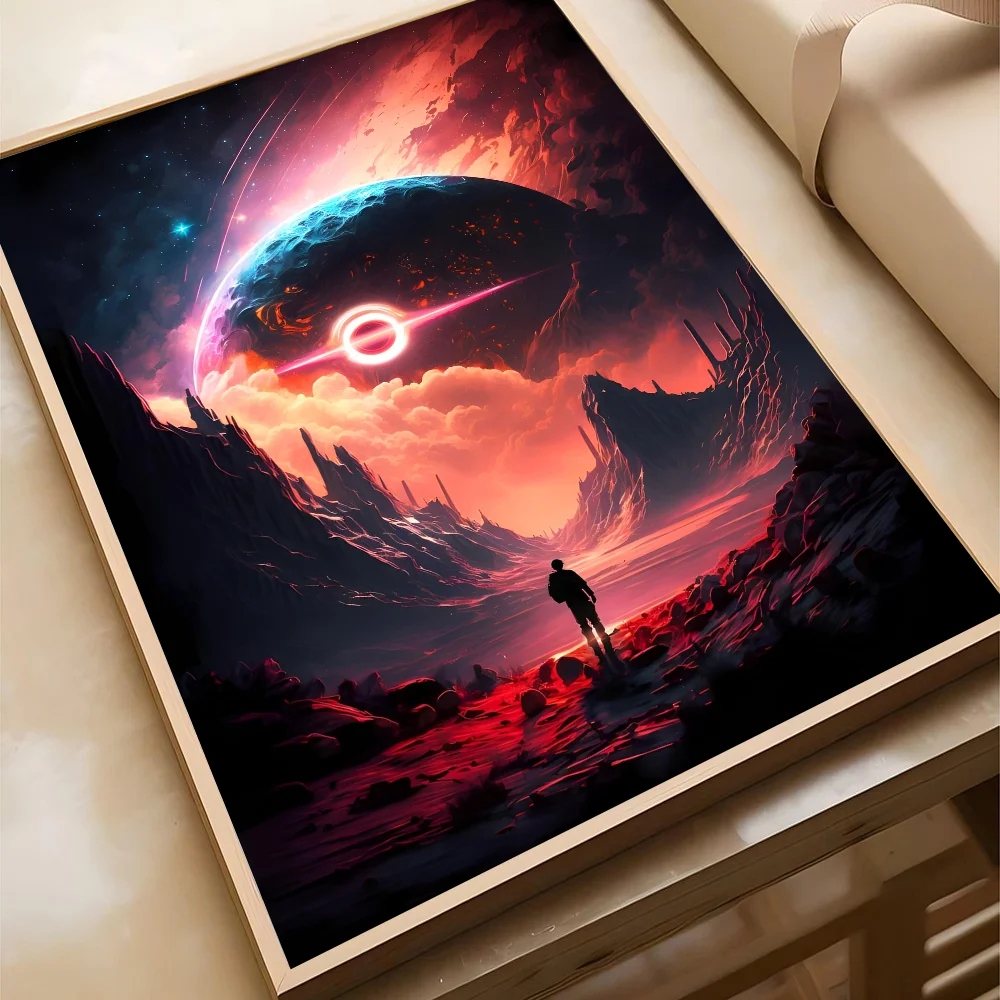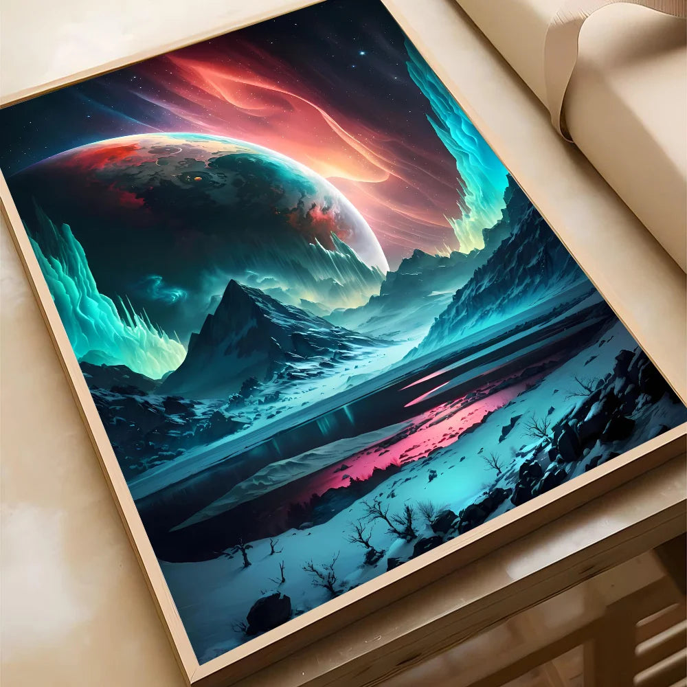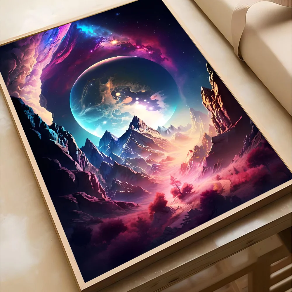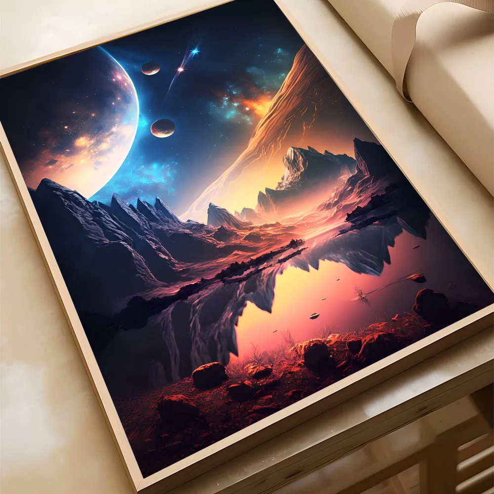 Surrealism Anime Fantasy Planet Self-Adhesive Poster – Frameless Space Art