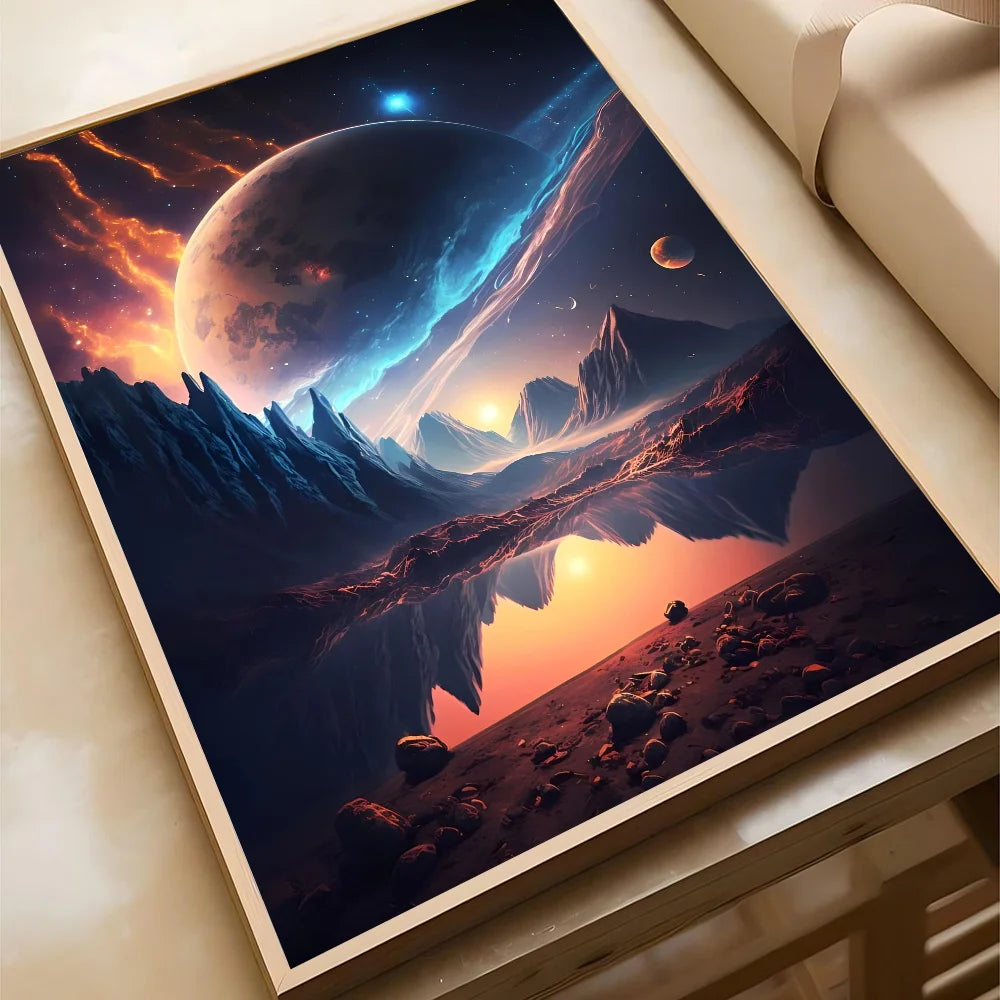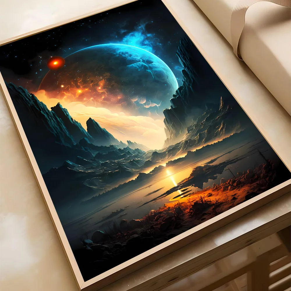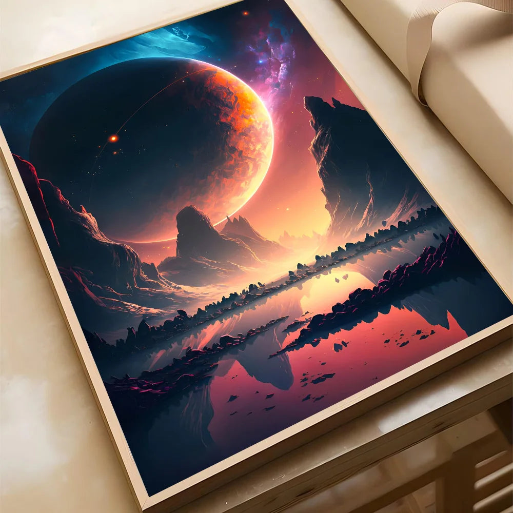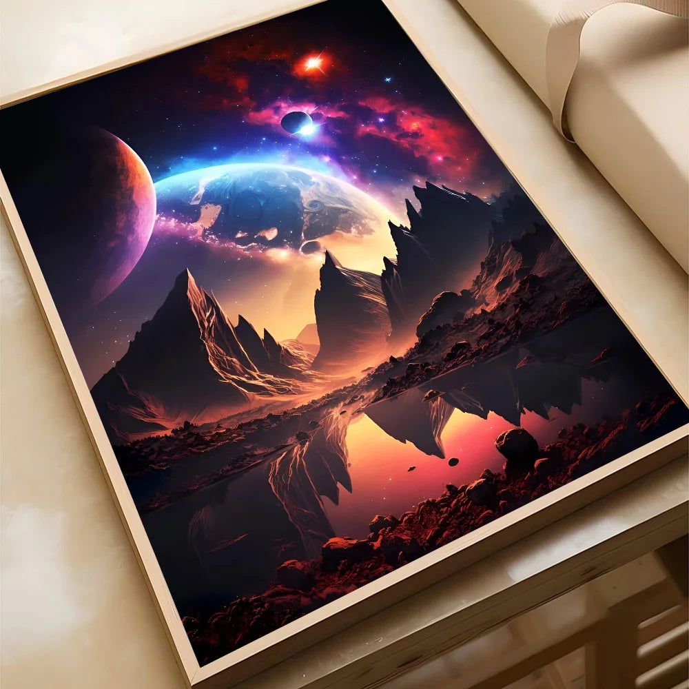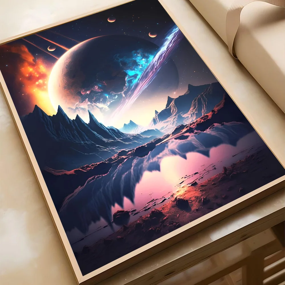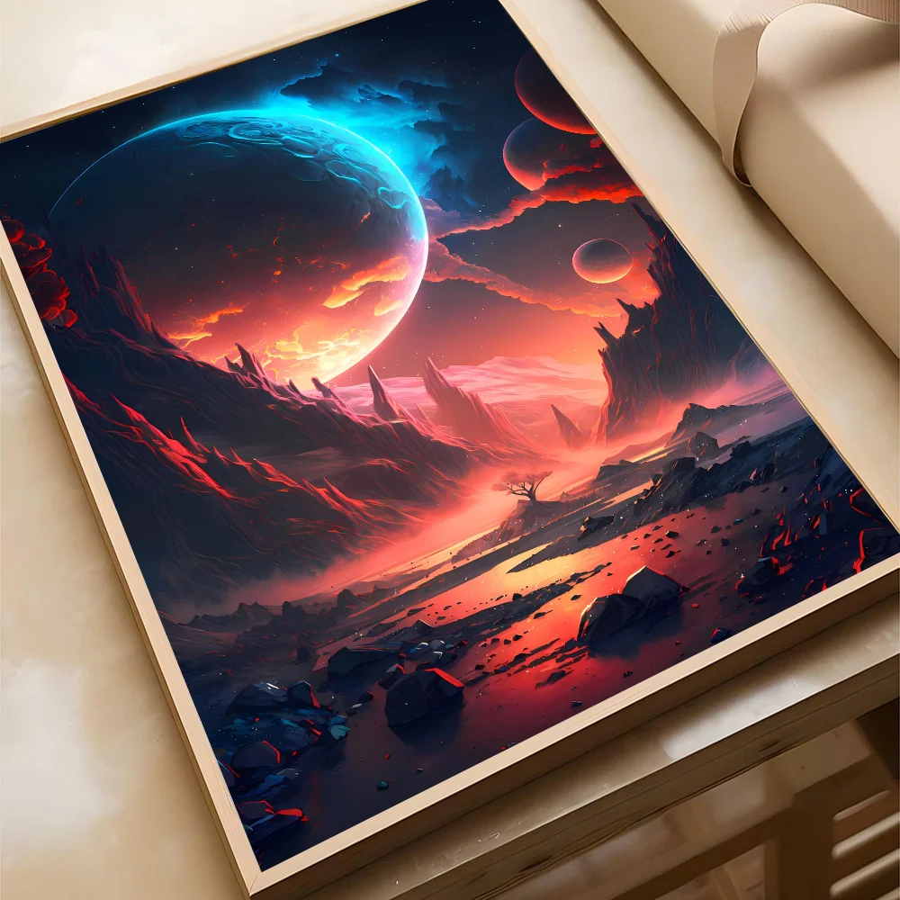 Surrealism Anime Fantasy Planet Self-Adhesive Poster – Frameless Space Art