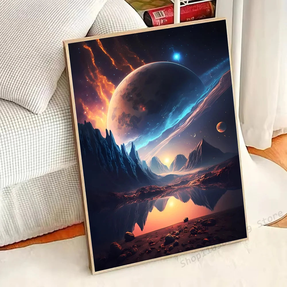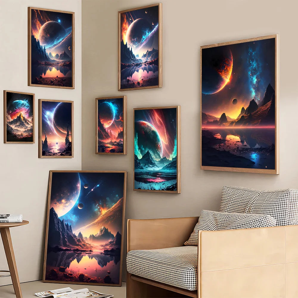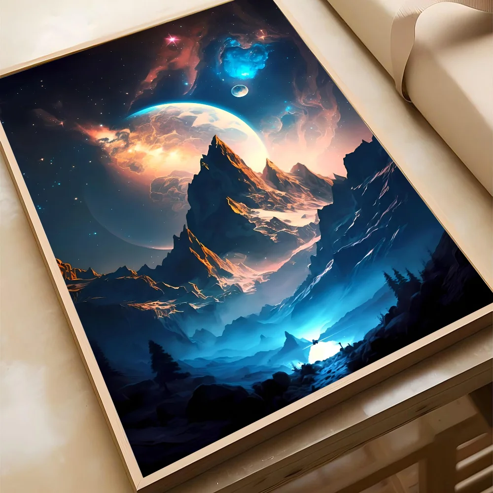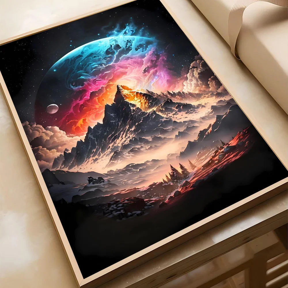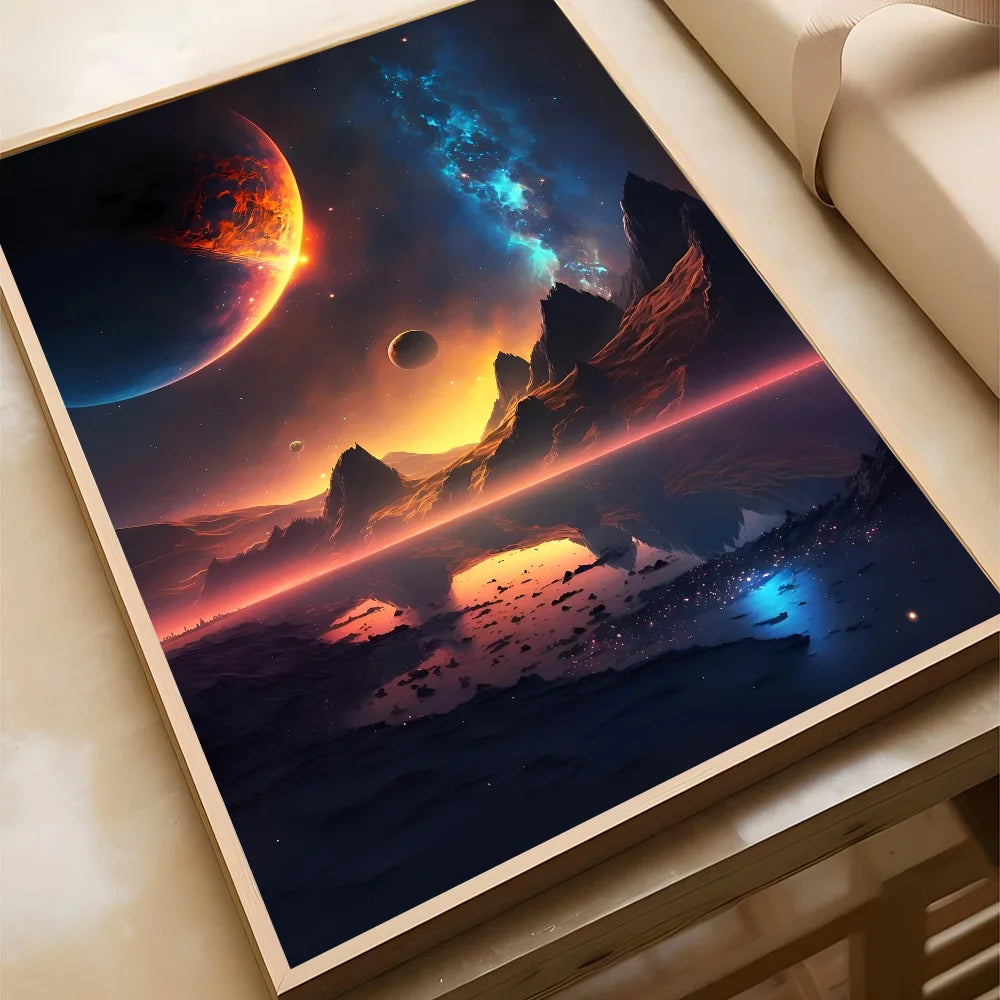 Surrealism Anime Fantasy Planet Self-Adhesive Poster – Frameless Space Art