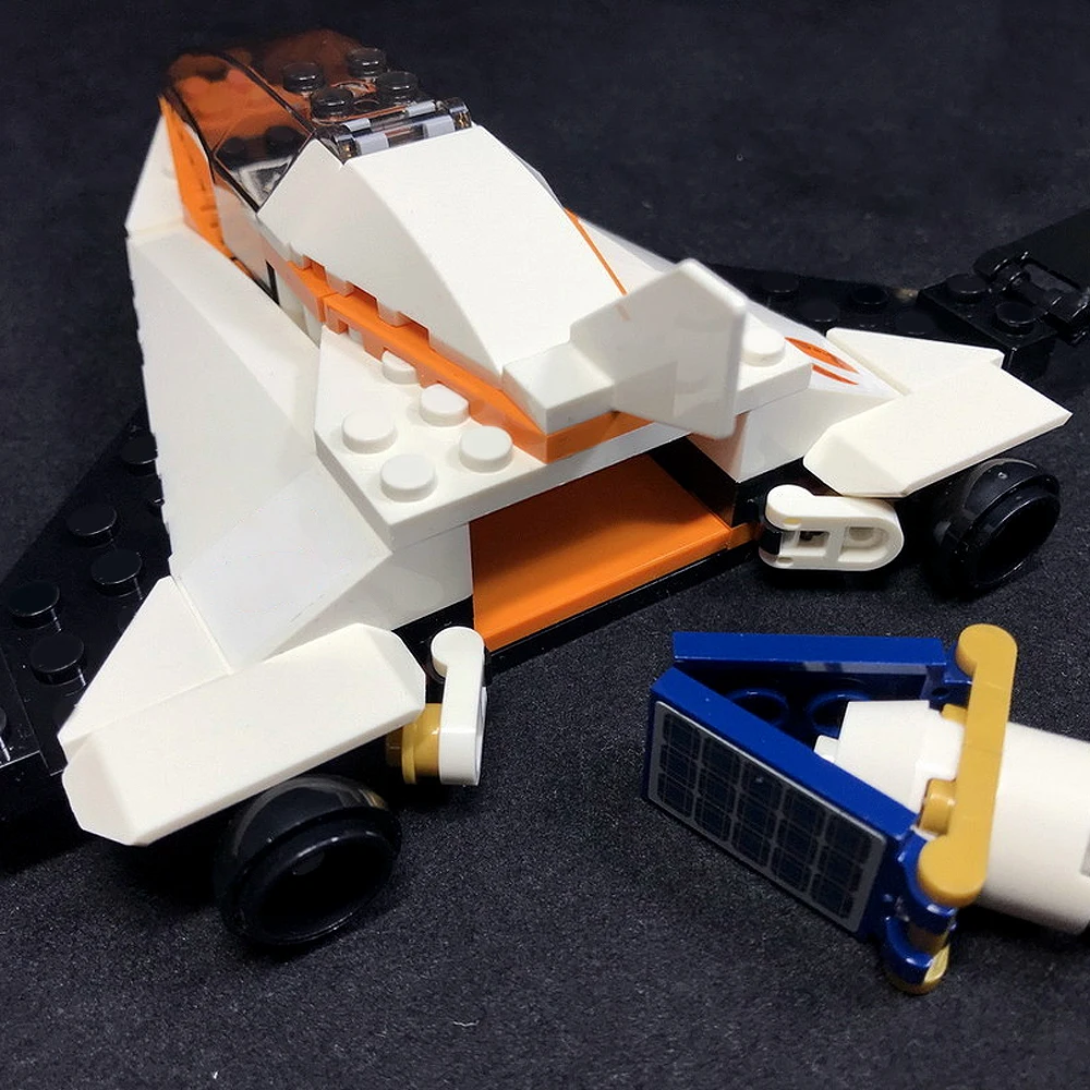 Includes astronaut minifigure, service satellite, and compact shuttle