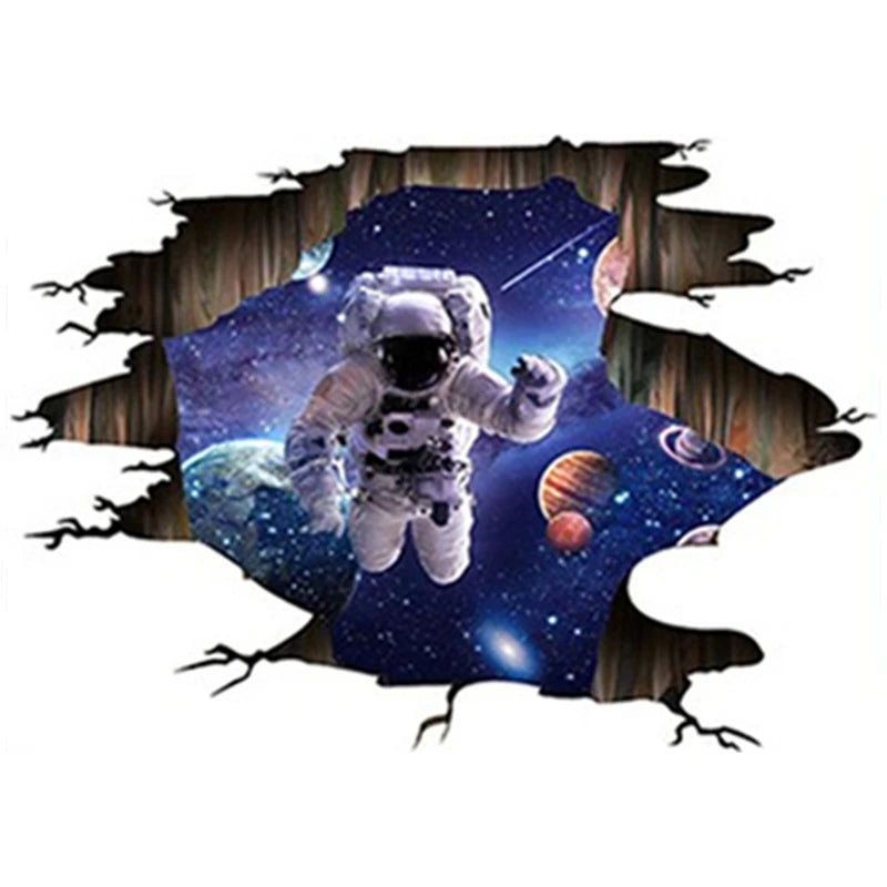 Transform any room into a cosmic adventure with this 3D Space Astronaut Wall Sticker — featuring a broken wall illusion and starry planet design, it’s a fun, eye-catching decoration for kids’ rooms or creative spaces.