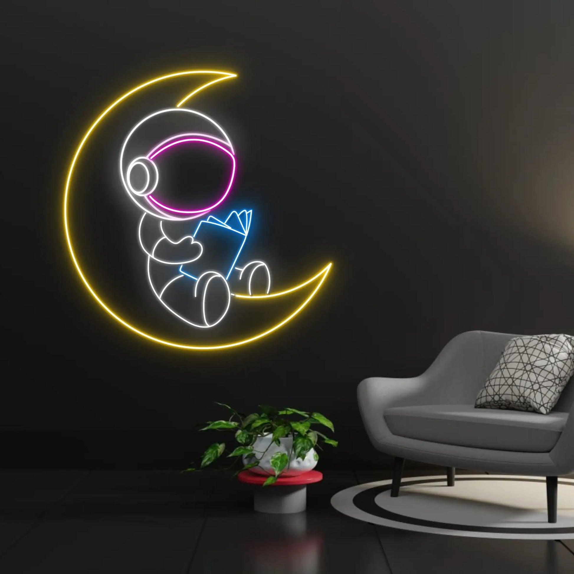 Light up your reading nook or bedroom with the Astronaut Reading Book neon sign—bring imagination and light together!