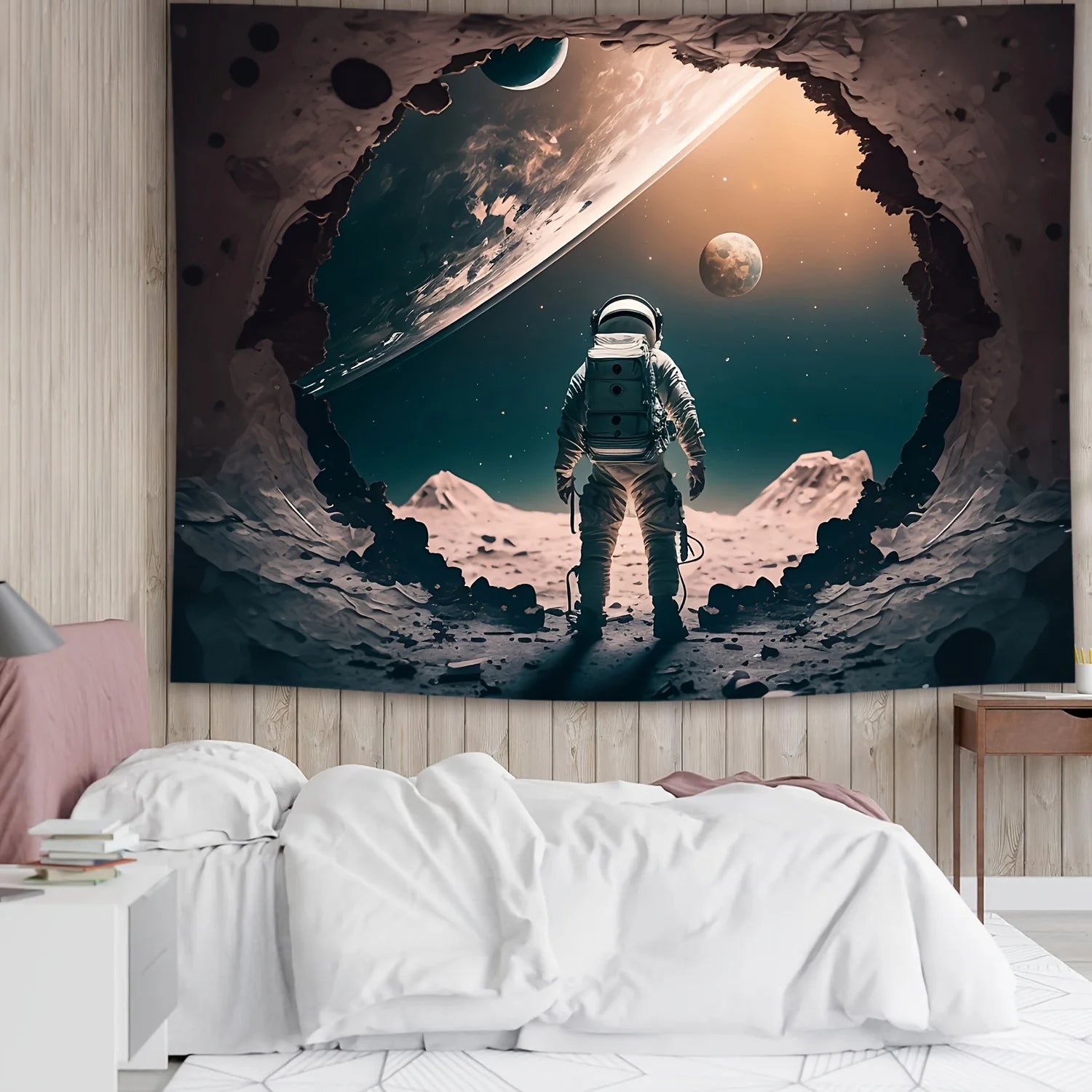Add some cosmic fun to your walls — get this astronaut fantasy tapestry today!