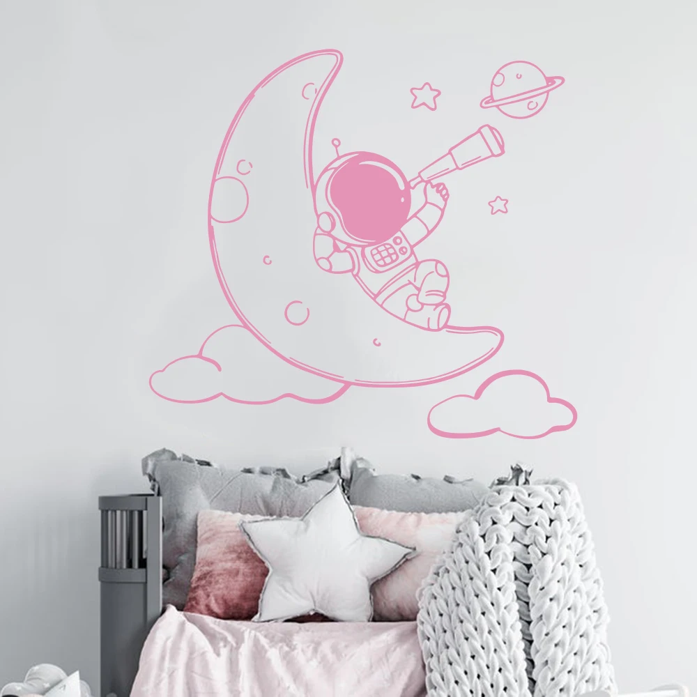 Cartoon Astronaut on the Moon Wall Decal – Kids’ Nursery & Playroom Decor