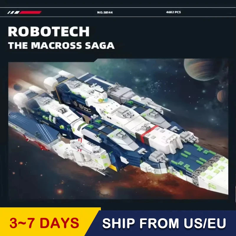 Recreate epic space battles with this MOC building block set of the iconic SDF-1 Macross spacecraft — a perfect gift for anime and building block fans.
