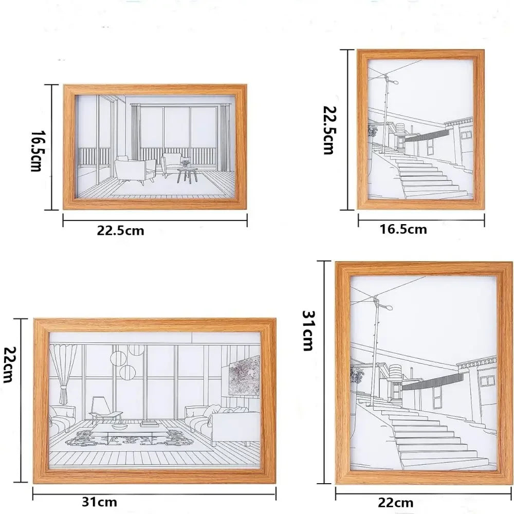 Acrylic or glass panel with high-definition printed artwork, set in a wooden or ABS base with built-in LED lighting.