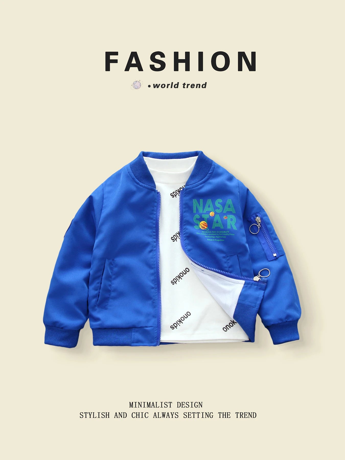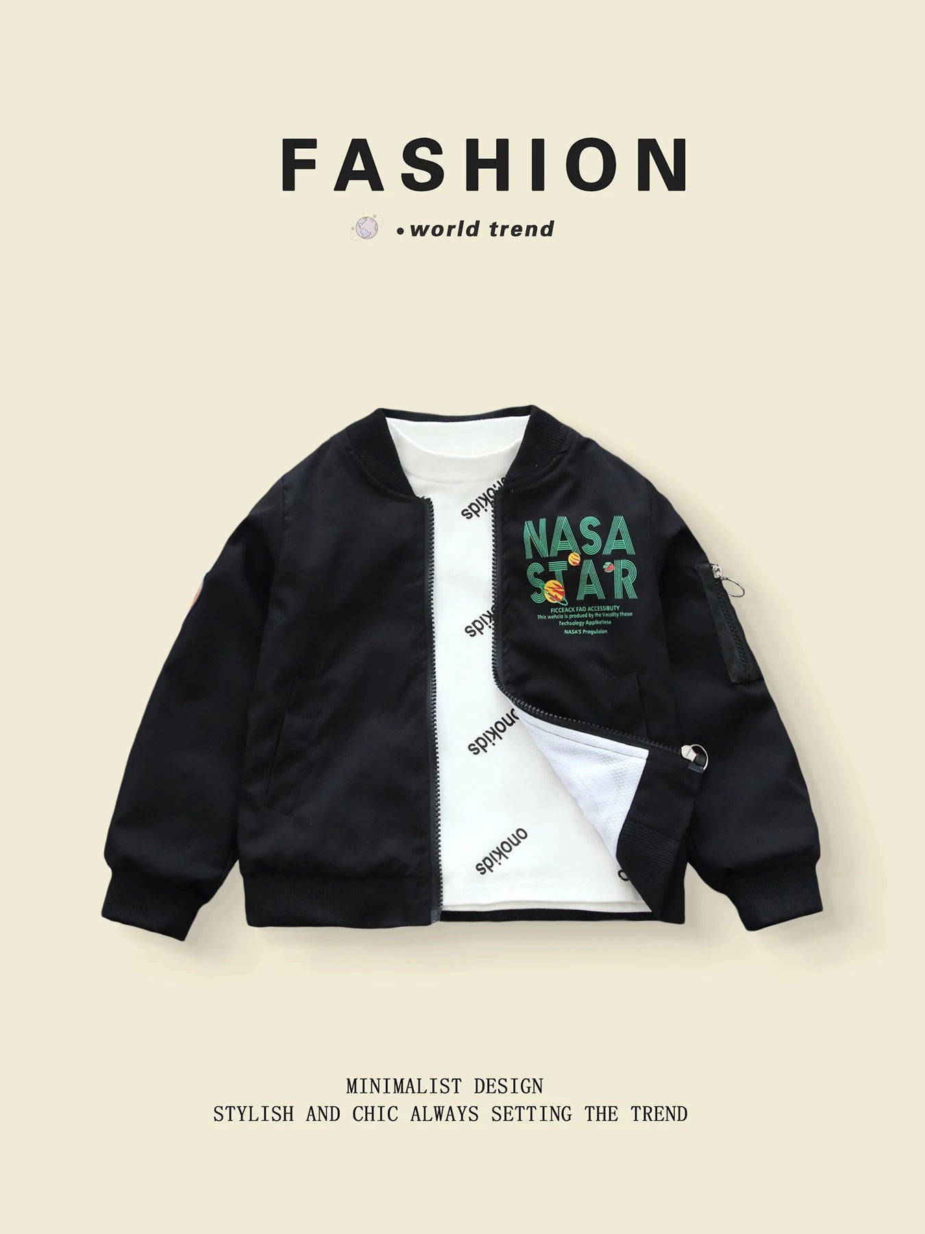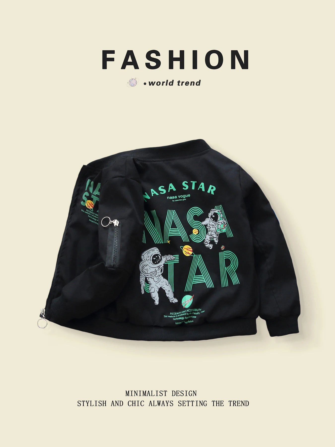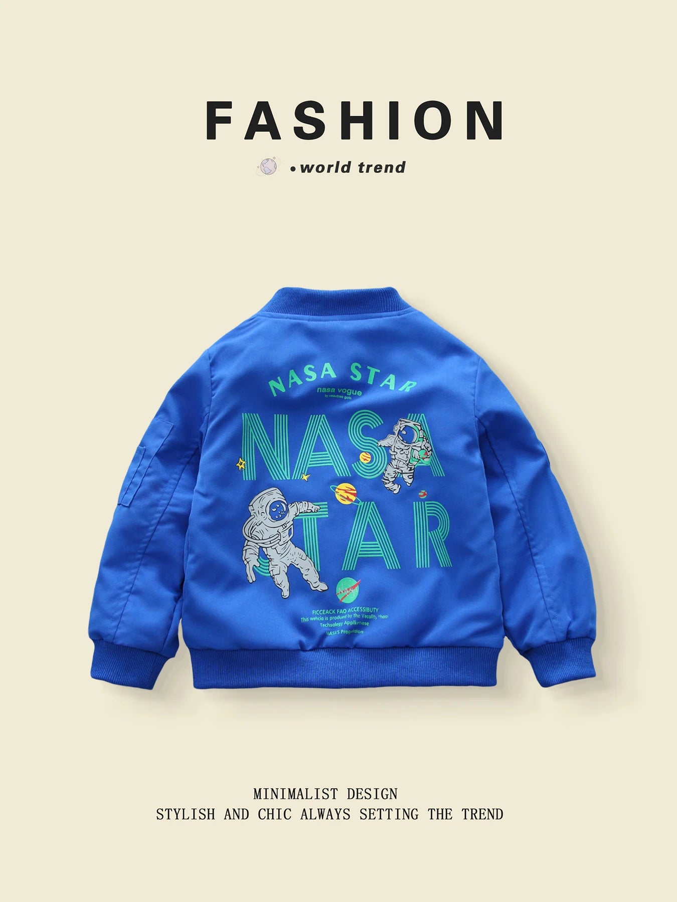 Gear up your little explorer with this fashionable NASA-inspired windbreaker — a sleek, lightweight jacket perfect for spring and autumn adventures.