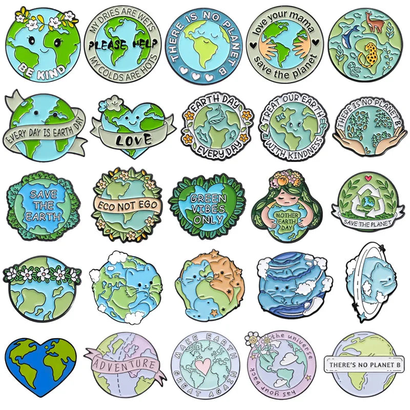 Short Description: Spread environmental awareness with this inspiring collection of Earth-themed enamel pins promoting planet protection — perfect eco-friendly accessories for conscious kids and adults!